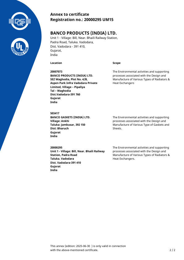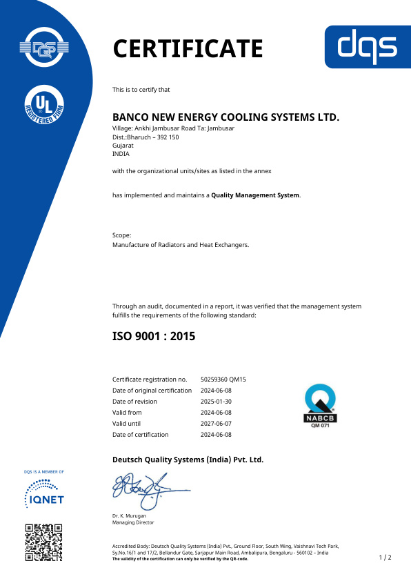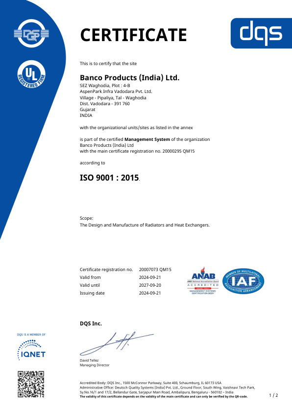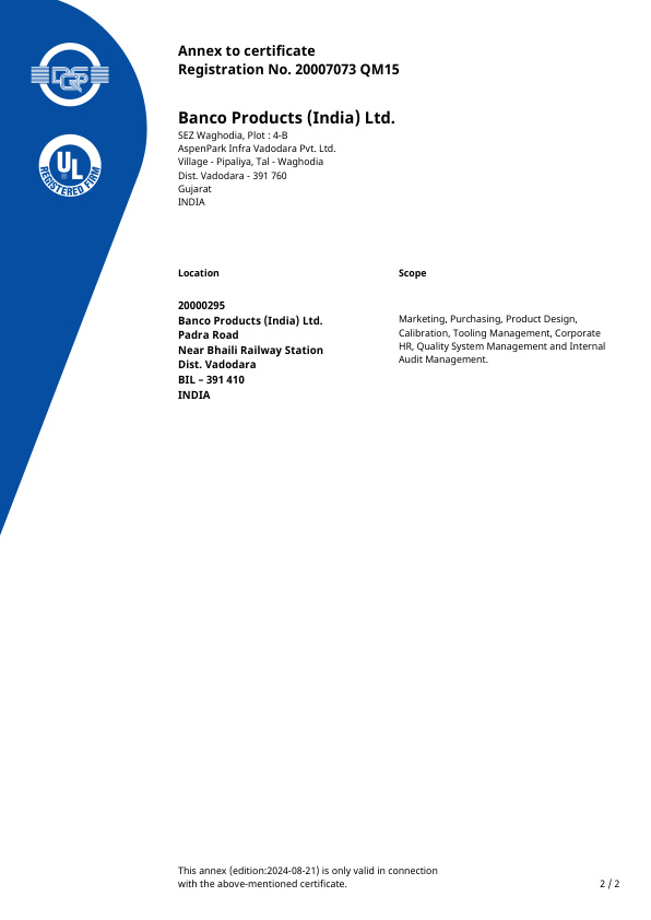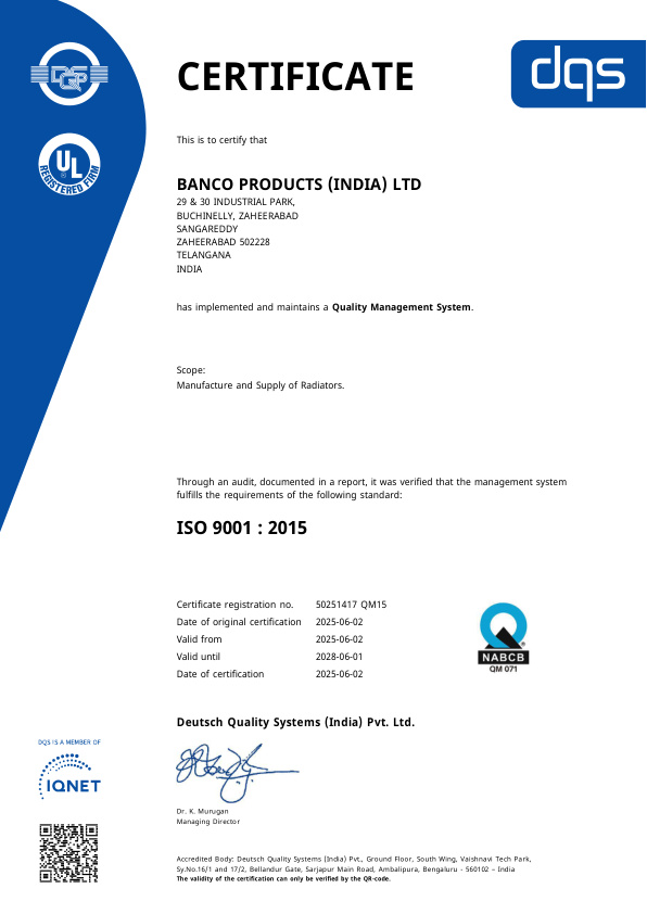 Banco’s mission is to provide the end customers with the highest quality products at the best value along with after sales services and professionalism. With the ongoing technological advancements and sophistication, Banco has taken several initiatives to provide more accountability and quality checks throughout their supply chain. The company adheres to stringent quality and manufacturing norms set by the International Standard Organization (ISO). Our certifications are the testimony of the best practices for industrial and commercial standards as well as for quality products, services, and systems.